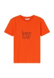 T-shirt à manches courtes avec col retourné. Ici dans un orange été, très flatteur ! Coupe droite.
