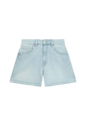 Ce short présente une taille légèrement plus haute et est confectionné dans un denim bleu clair au look robuste.