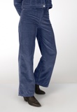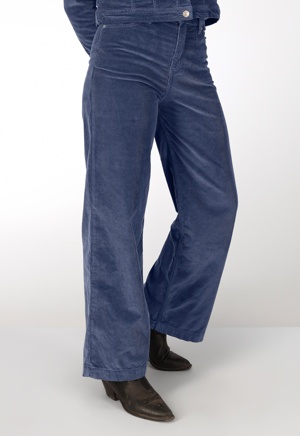 Ce velours côtelé à fines côtes se distingue par sa magnifique couleur indigo, à la fois profonde et élégante. Confectionné dans un tissu stretch confortable, il offre une coupe agréable et une grande liberté de mouvement. Parfait pour un look décontracté ou plus habillé.