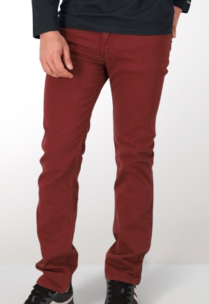 Denim coloré rouge foncé avec stretch confortable pour une coupe agréable et une liberté de mouvement optimale. Les accessoires en vieux argent authentique apportent une touche à la fois élégante et audacieuse.