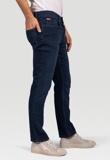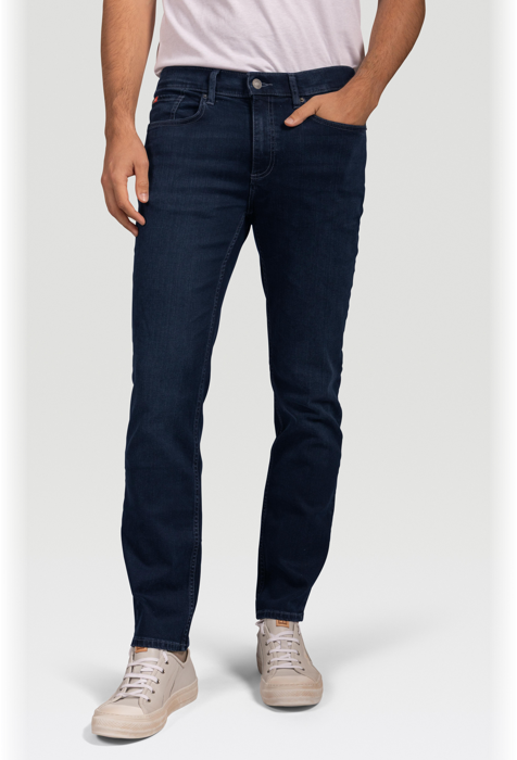 Le jeans est confectionné dans un denim blue-black de qualité supérieure, offrant un confort exceptionnel grâce à sa flexibilité agréable et sa durabilité remarquable.