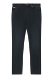 Ce jean se distingue par un lavage noir-bleuté profond et des surpiqûres ton sur ton, pour un look élégant et raffiné.