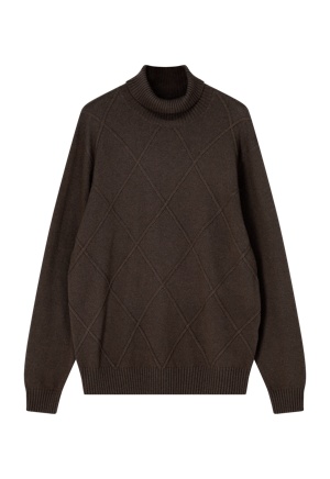 Ce pull élégant avec col roulé est l'ajout parfait pour les mois plus froids. Son motif en losanges tricoté lui confère un look classique et raffiné, ce qui le rend aussi bien adapté aux tenues décontractées qu'aux looks plus habillés. Le col roulé offre une chaleur et un confort supplémentaires, tandis que le tissu doux assure une coupe agréable. Idéal pour l'automne et l'hiver.