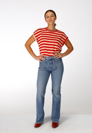Deze flared fit jeans heeft ingewerkte front pockets en is gemaakt van structuurdenim voor een stoere uitstraling. De egale midblauwe wassing, gecombineerd met mooie waseffecten, maakt de jeans tot een stijlvolle en moderne keuze.