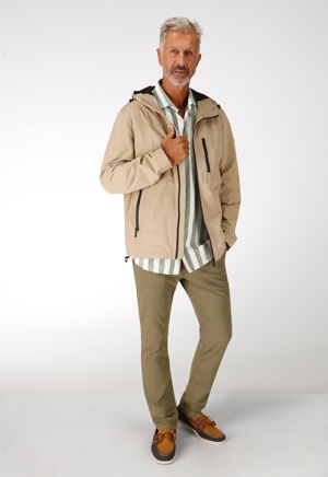 Heel kwalitatieve zomerjas met kap, perfect voor frisse avonden. Volledige voering in mesh tegen het transpireren, verschillende zakken aan de voorkant die zijn ingewerkt met waterproof ritsen. Kan onderaan aangesnoerd worden.