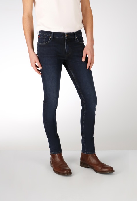 Onze meest geliefde skinny fit jeans, vervaardigd uit onze kenmerkende Flex stof, straalt elegantie uit met zijn prachtige donkere wassing, waardoor het een tijdloze favoriet is voor elke gelegenheid.