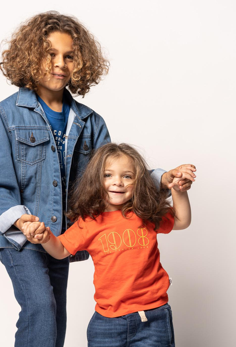 T-shirt in een zomers oranje, met korte mouwen en vervaardigd in een zachte kwaliteit, '1908' print op de borst, het geboortejaar van LEE COOPER.