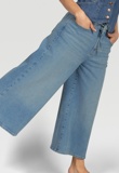 Deze hippe wide leg jeans is gemaakt van een lichtblauwe denim die soepel langs het been valt voor een comfortabele, elegante look. De lengte tot boven de enkels geeft een moderne, luchtige uitstraling, terwijl het denim koordje in de taille zorgt voor een speels detail en een mooi gevormde pasvorm. Een trendy essential die moeiteloos elke outfit naar een hoger niveau tilt.