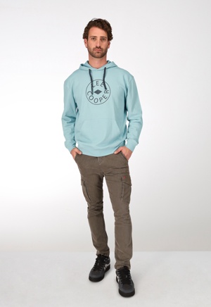Een stoere cargo-look in een karaktervolle, khaki-kleurige structuurstof met een natuurlijke, aangename touch. De robuuste textuur geeft een authentiek outdoorgevoel, terwijl de hoornen accessoires zorgen voor een verfijnde afwerking met een ambachtelijke uitstraling. Ideaal voor een functionele, eigentijdse look met een avontuurlijke twist.