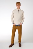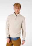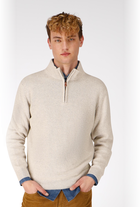 Een prachtige kwaliteitstrui met opstaande kraag en halve rits, gemaakt van zeer zachte wol, een onmisbaar stuk in je wintergarderobe.