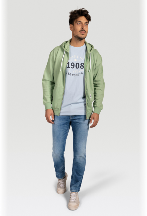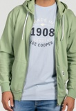 Sweater met kap en rits in een modieuze muntkleur. Voorzien van comfortabele kangoeroezakken en afgewerkt met een subtiele Lee Cooper-patch. De zachte stof en relaxte pasvorm maken dit een ideaal stuk voor elke dag.